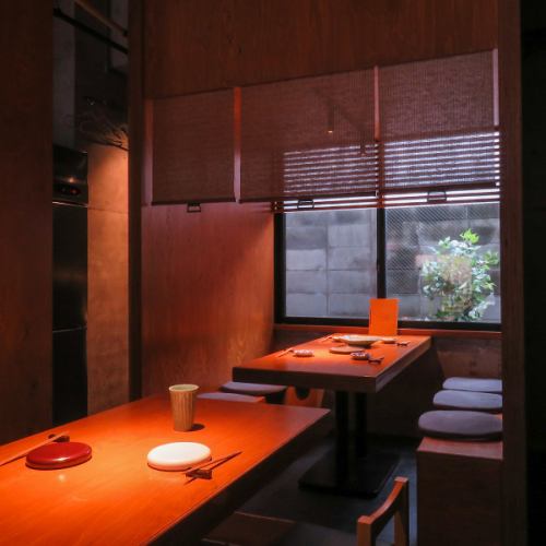 【半個室あり◎】半個室風のお席は、周りを気にせずお食事をお楽しみいただけます。落ち着いた雰囲気の居心地の良さを感じていただけるのも魅力の一つです。お仕事帰りやご友人とのお集まり、ご家族とのお時間をお愉しみください。※4名がけのテーブル席も2卓ございます。